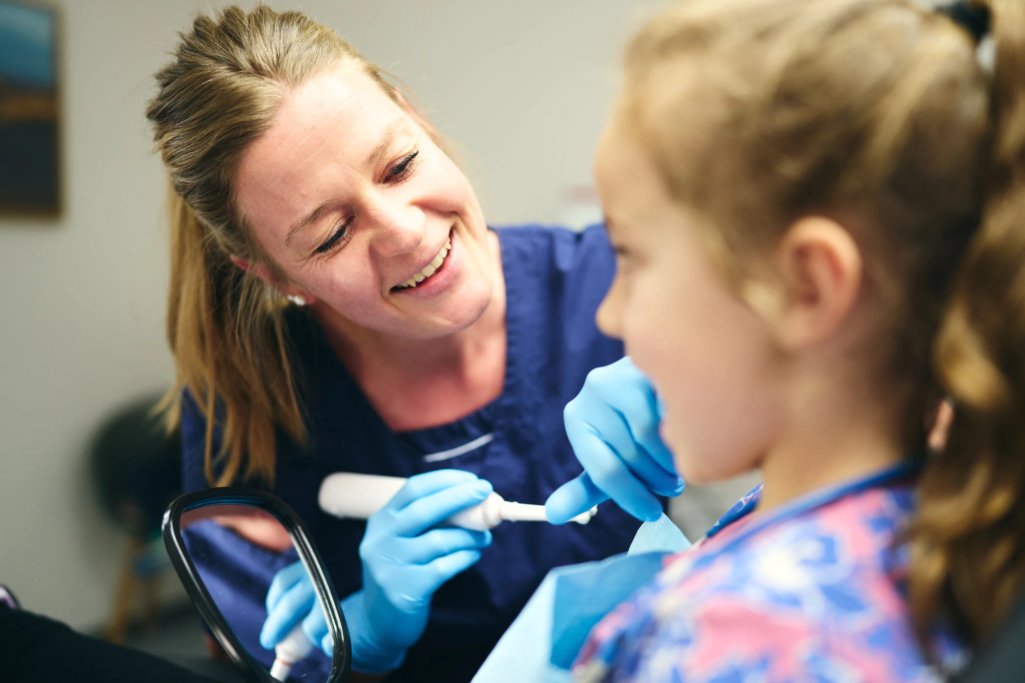 Vi kan også fluorbehandle det angrebne område. Hvis risikoen for at udvikle caries skønnes høj, kan vi derudover anvise en tandpasta med særlig højt indhold af fluor og fluorskylninger – begge initiativer er yderst effektive.